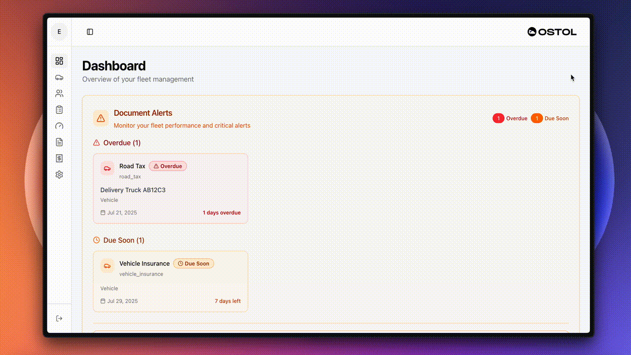 Replace the chaos with clarity. Ostol gives you everything you need to manage your fleet effectively — without the complexity of enterprise systems.